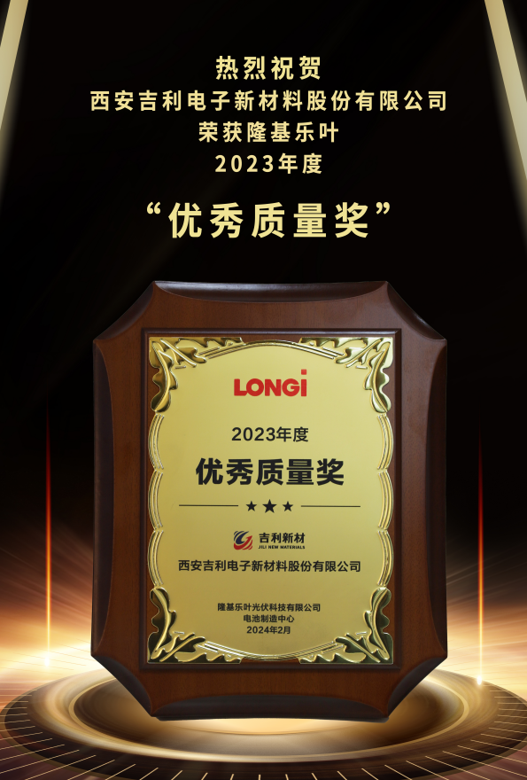 吉利新材已連續(xù)多年榮獲隆基樂(lè)葉“優(yōu)秀質(zhì)量獎(jiǎng)”,此項(xiàng)殊榮也是對(duì)我們極大的肯定與鼓舞。 未來(lái),我們將繼續(xù)堅(jiān)持技術(shù)創(chuàng)新與產(chǎn)品開(kāi)...
