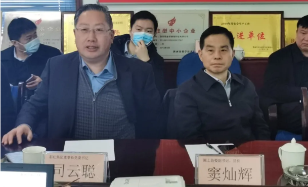 1月8日,彩虹集團有限公司董事長、黨委書記司云聰及安徽省阜陽市潁上縣縣委副書記、縣長竇燦輝一行10人蒞臨我司參觀訪問,并與我司董事長聶新宇,副總經(jīng)理邢歲平等人舉行座談!