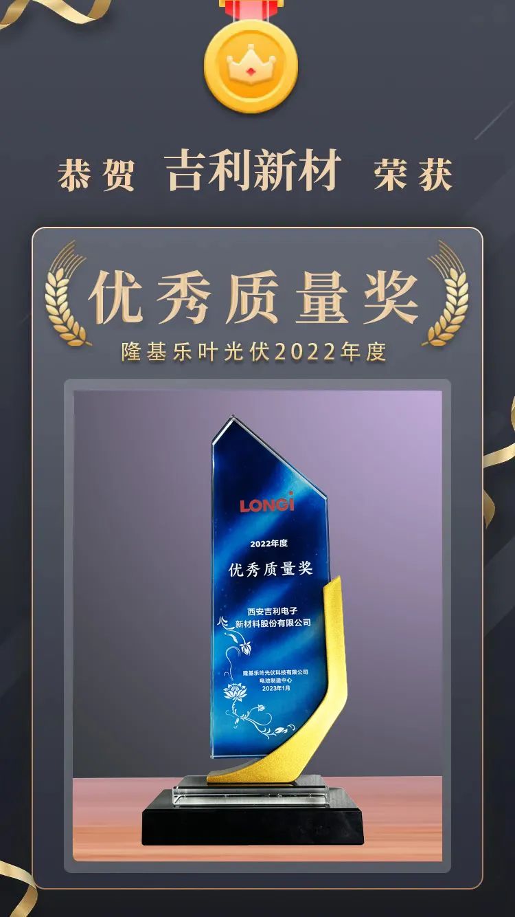 熱烈祝賀吉利新材榮獲隆基樂(lè)葉光伏2022年度“優(yōu)秀質(zhì)量獎(jiǎng)”