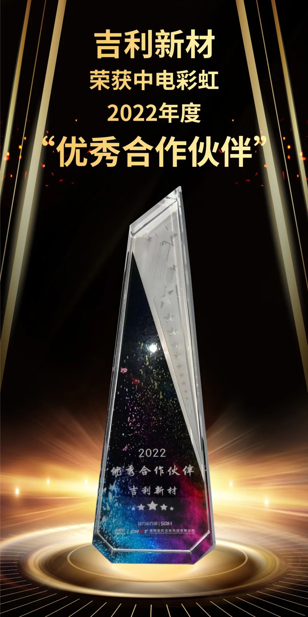 熱烈祝賀我司榮獲中電彩虹2022年度“優(yōu)秀合作伙伴”